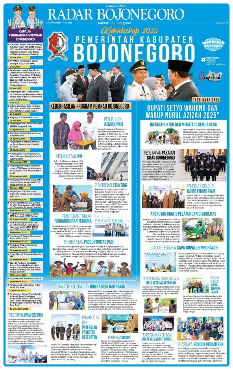Sebuah perjalanan dedikasi di tahun 2025. Melalui Kaleidoskop ini, kita melihat bagaimana komitmen Pemerintah Kabupaten Bojonegoro dalam membawa perubahan nyata. Mulai dari penurunan angka kemiskinan,...